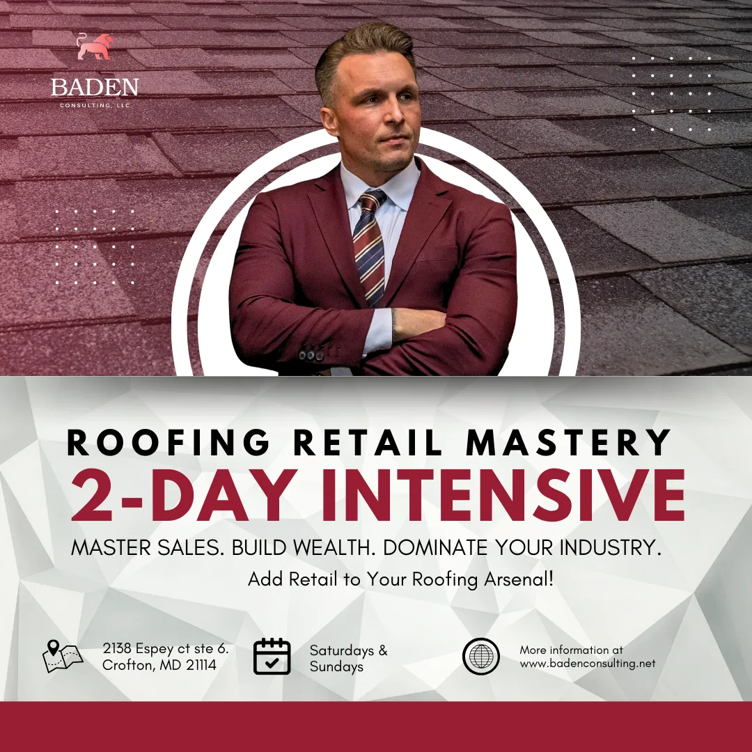 This is NOT an event, this is a hands-on weekend workshop designed for insurance roofers ready to add retail sales to their services. We’re doing a comprehensive overview of the entire retail vertical from marketing/leads, sales, and recruiting, to metrics and data. Everything you need.